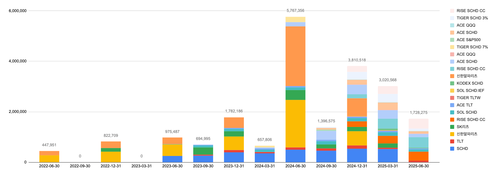 분기배당인 SCHD와 SK리츠의 배당금이 포함된 금액이다.