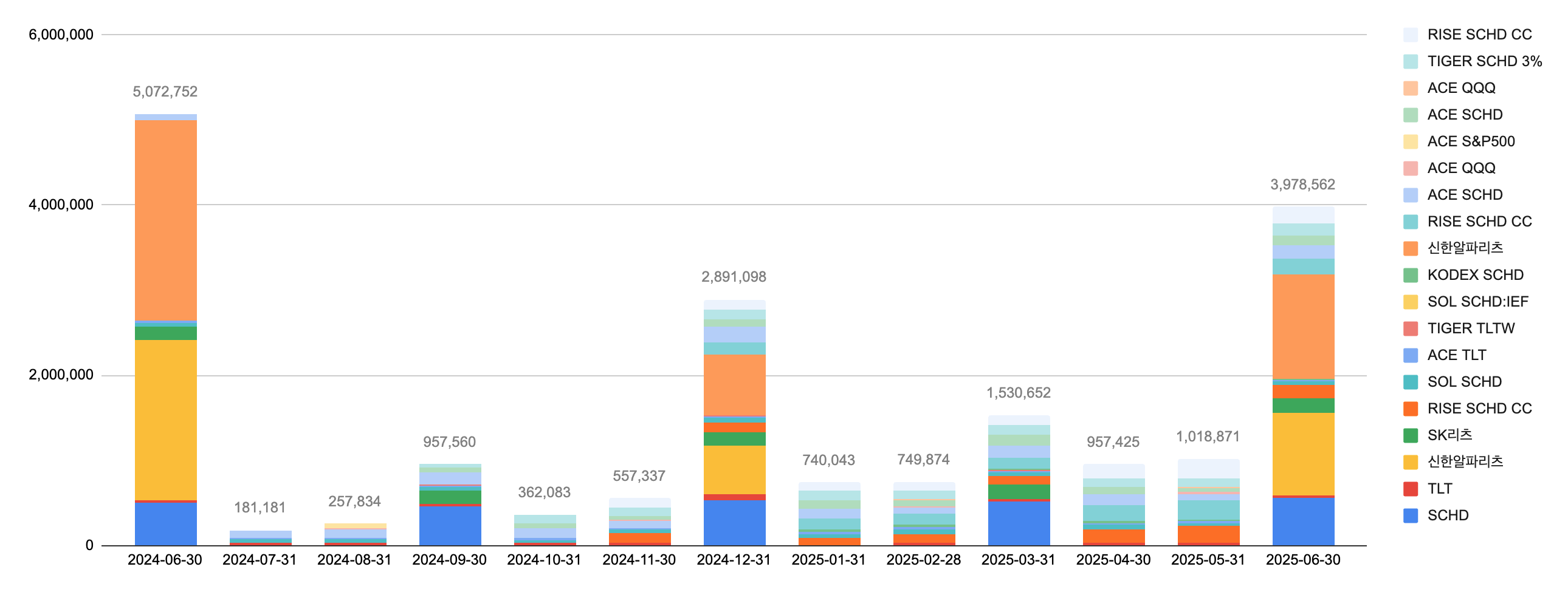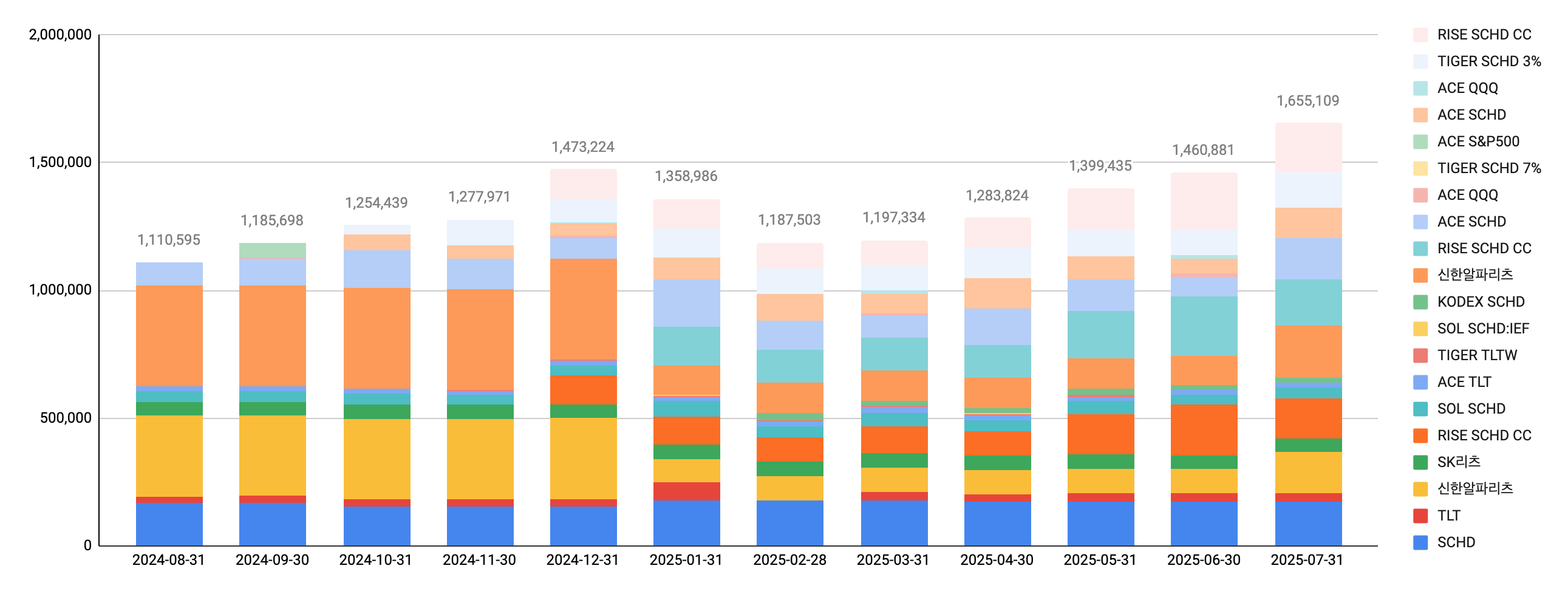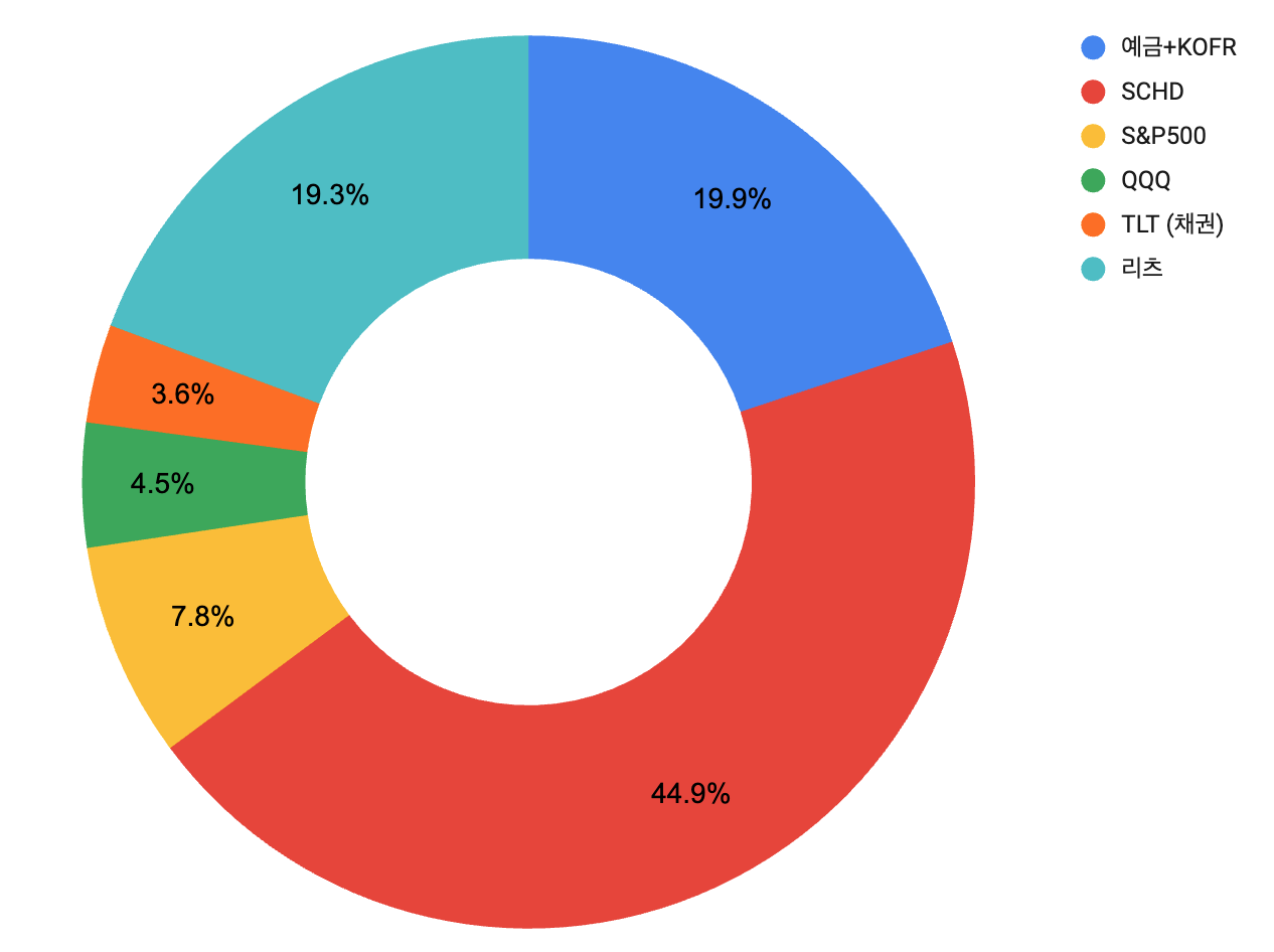 주식은 **SCHD : QQQ = 80 : 20** 으로 맞춰나가고 있는데, 생각보다 빠르게 진행되질 않는다.
