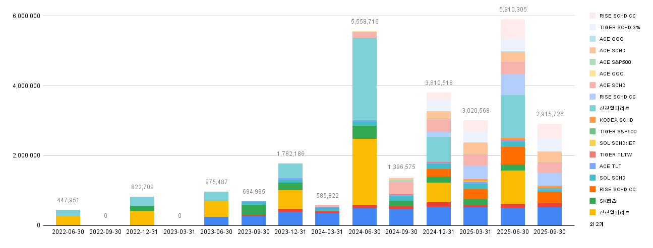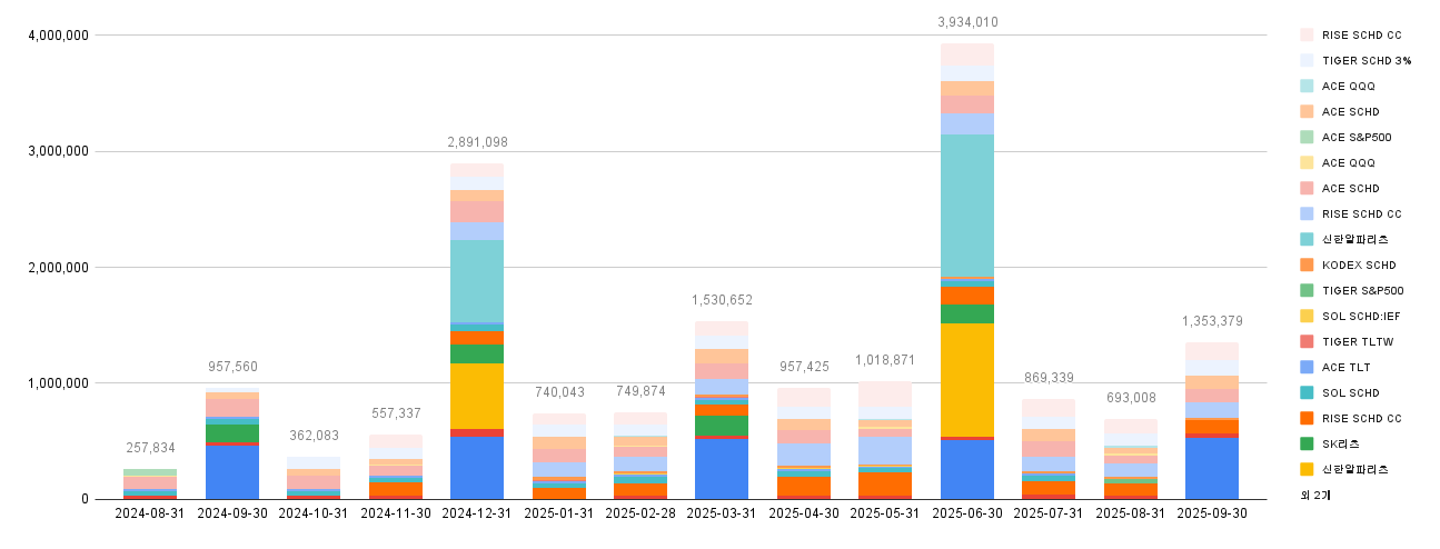 25년도 9월은 분기배당이 있기 때문에 나눠서 보자면, 아래와 같다.