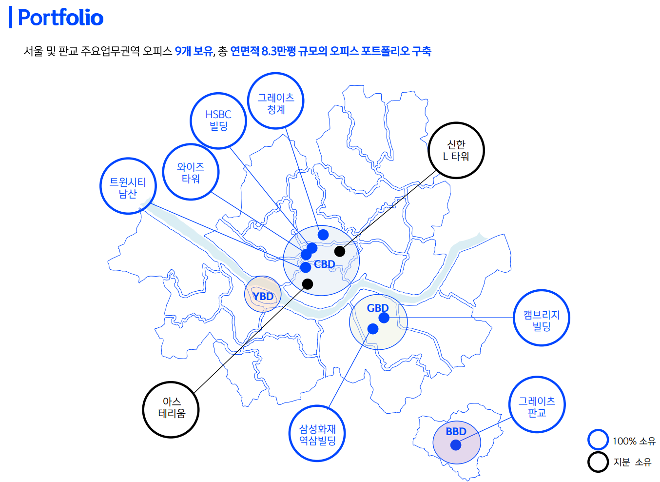 CBD/GBD에 얼마나 많은 자산을 가지고 있는지가 리츠의 경쟁력이라고 보고 있는 듯 하다.