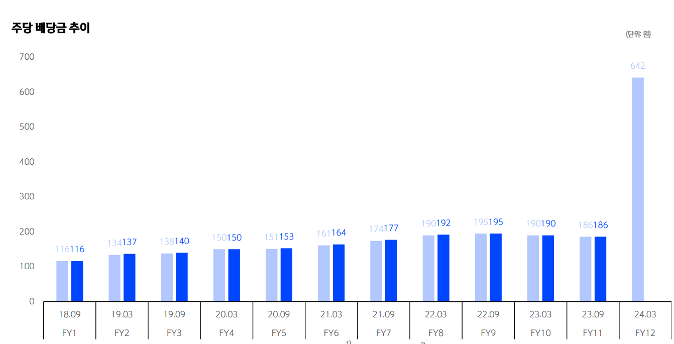 그 특별배당이 올해 6월에 입금될 예정이고, 642원!!!
