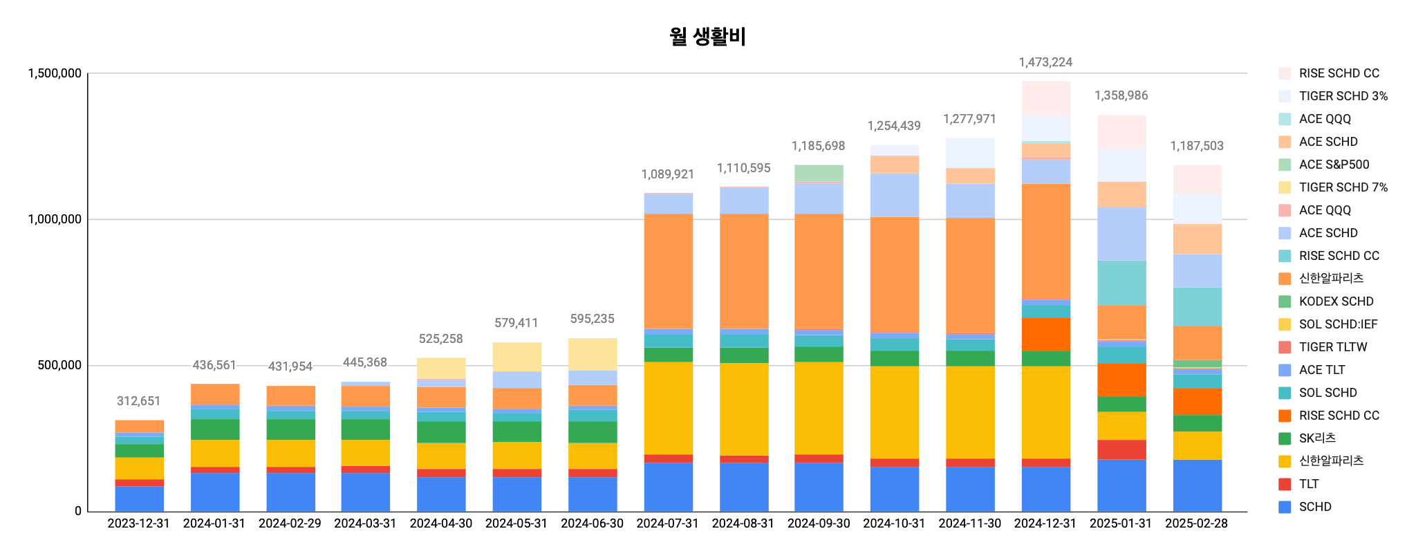 월 분배 ETF들로는 처음으로 70만원을 돌파했다. 이 상태로 분기 배당까지 합쳐진다면, 120만원은 넘을 수 있지 않을까 생각된다.